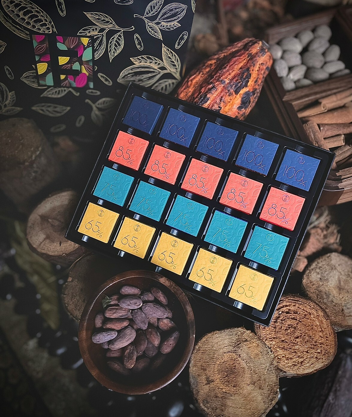 選用正港台灣巧克力製作,從種植、發酵、烘烤、精磨到包裝一條龍製作,新鮮、健康、高純度的巧克力,採用木盒包裝方便攜帶也有隔熱效果,精緻小禮盒首選。