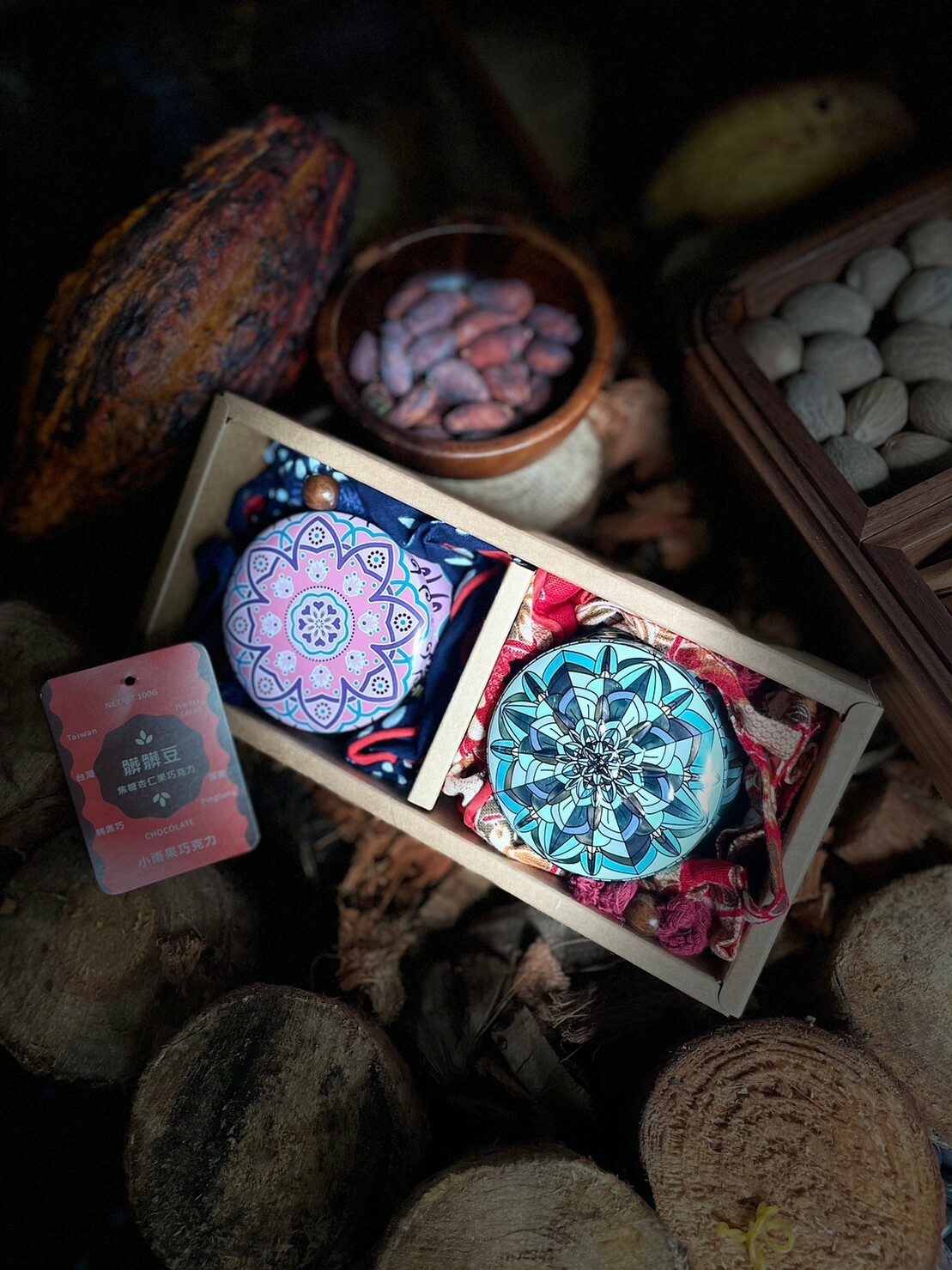 選用正港台灣巧克力製作,純手工翻炒杏仁果,裹上獨特秘方焦糖糖衣,再用75%純黑巧克力批覆三層,苦甜又帶點焦香味。
